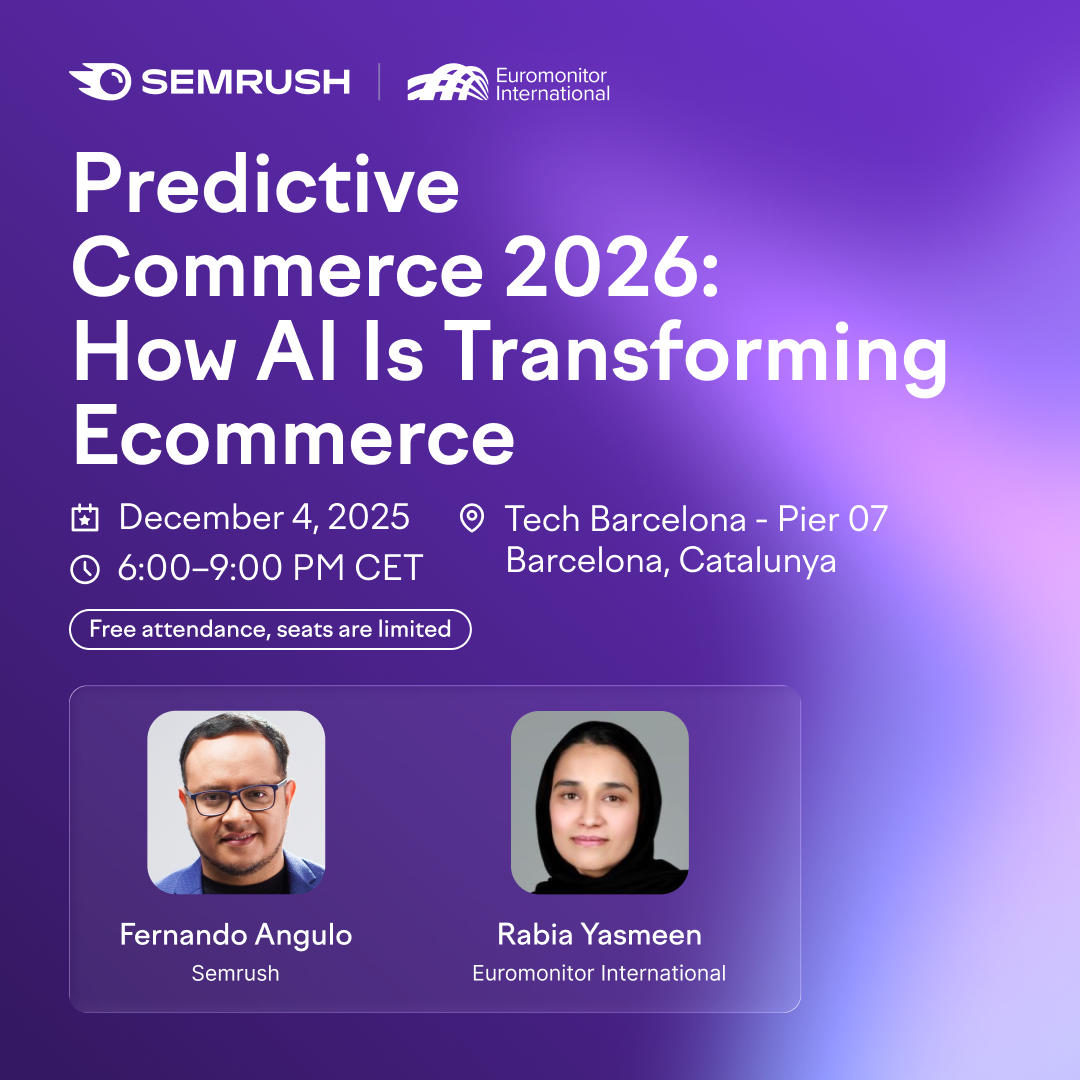 Join Semrush and Euromonitor International for an evening of practical insights and networking. We’ll share findings from our recent report “The State of FMCG Ecommerce 2025” and show how AI and digital intelligence are reshaping global and Spanish markets.