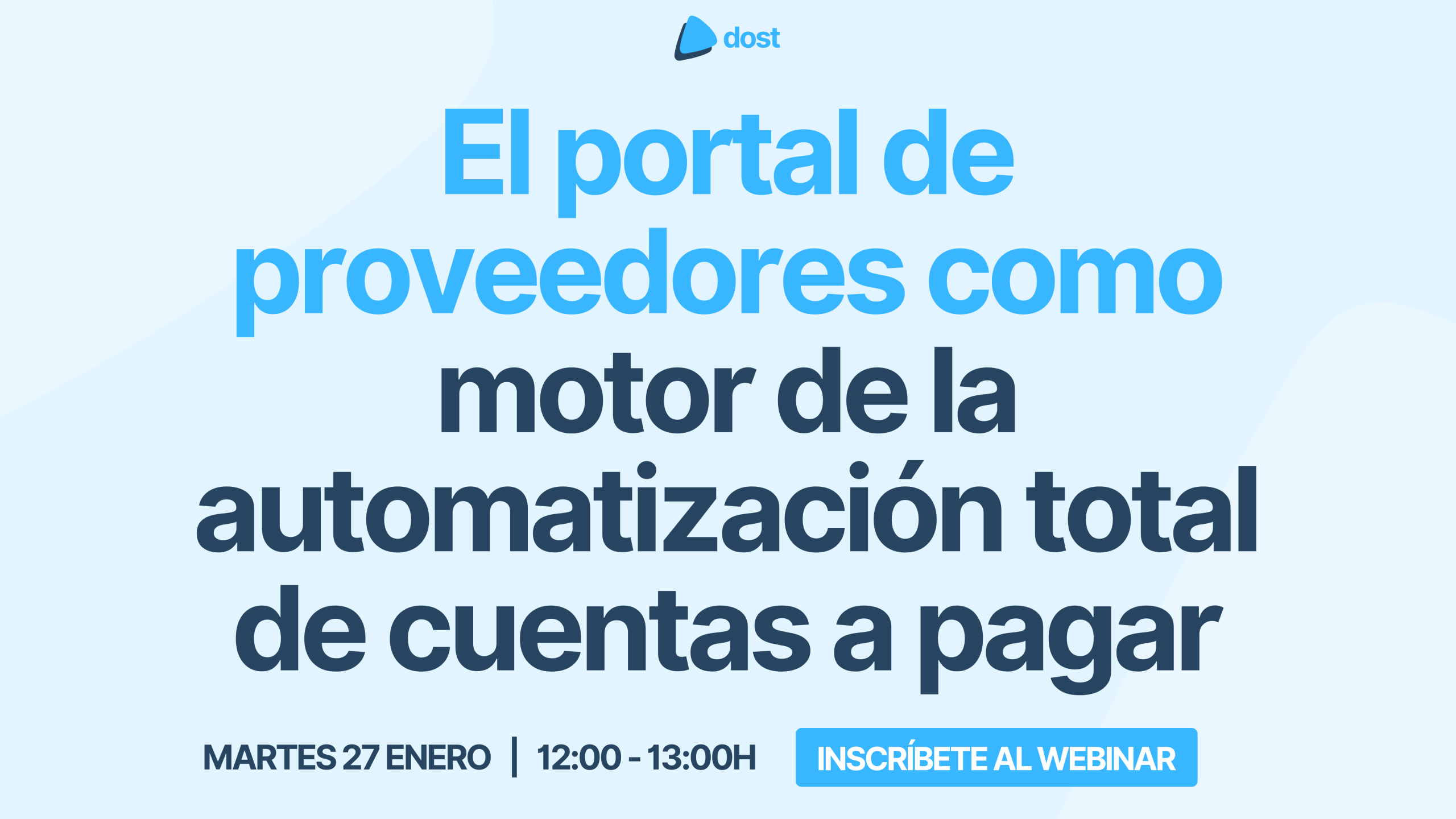 En el próximo webinar de Dost podrás ver cómo automatizar las cuentas a pagar desde el origen: recepción de facturas, control del proceso y conciliación bancaria, sin fricción para el equipo financiero.