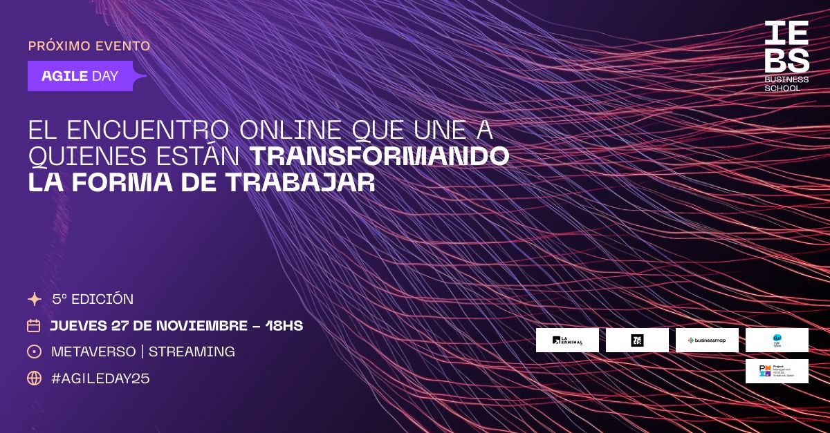 IEBS Business School celebra el próximo 27 de noviembre de 2025, a las 18:00h (GMT+2), una nueva edición del Agile Day, un evento global y online que reúne a líderes digitales expertos en metodologías ágiles, gestión del cambio y mejora continua en las organizaciones. El encuentro se llevará a cabo online y en el metaverso, ofreciendo una experiencia inmersiva y accesible a profesionales de todo el mundo.